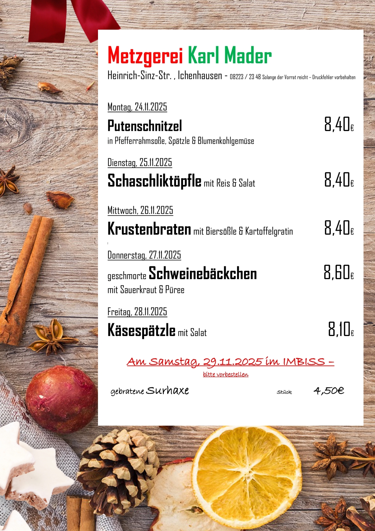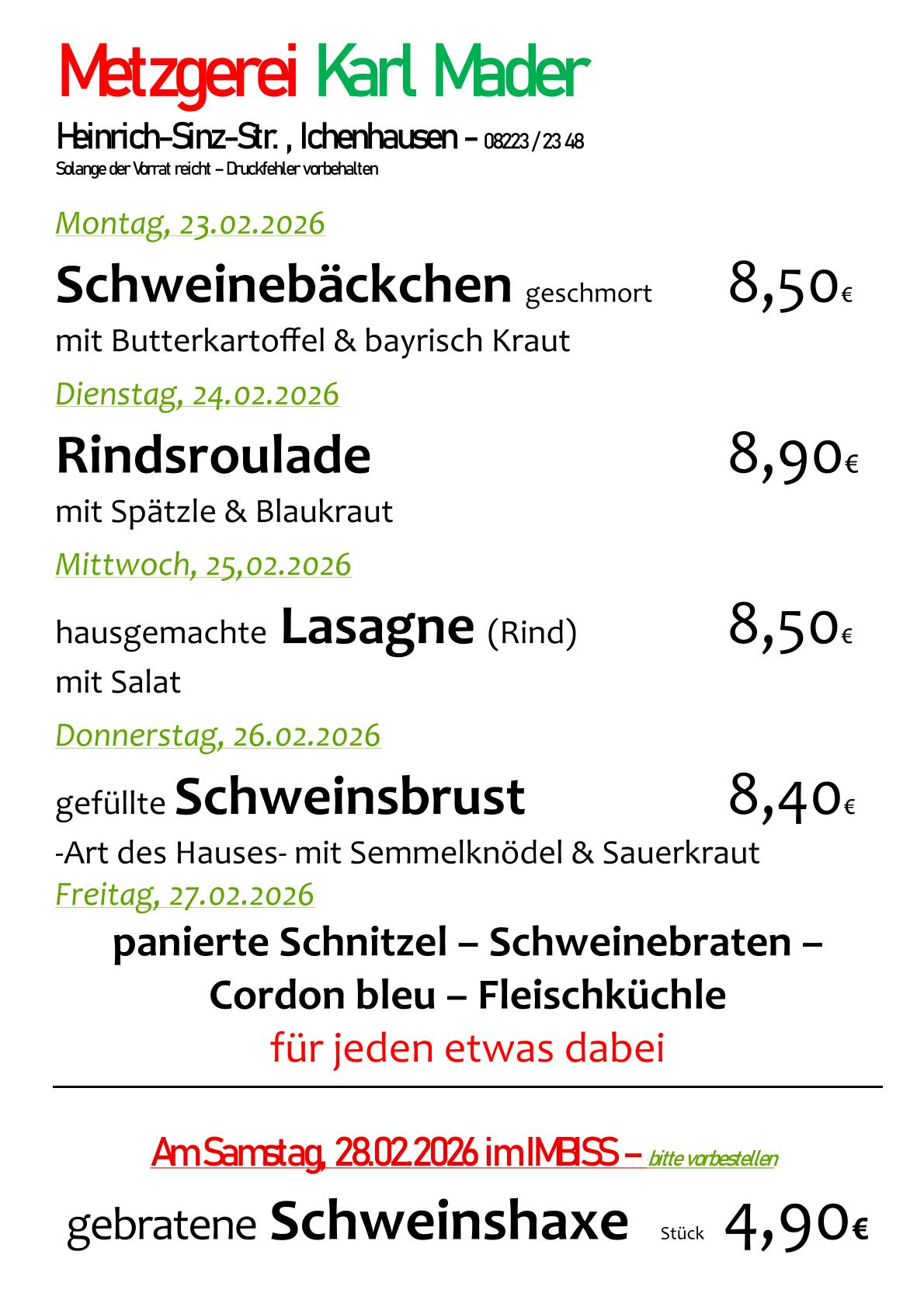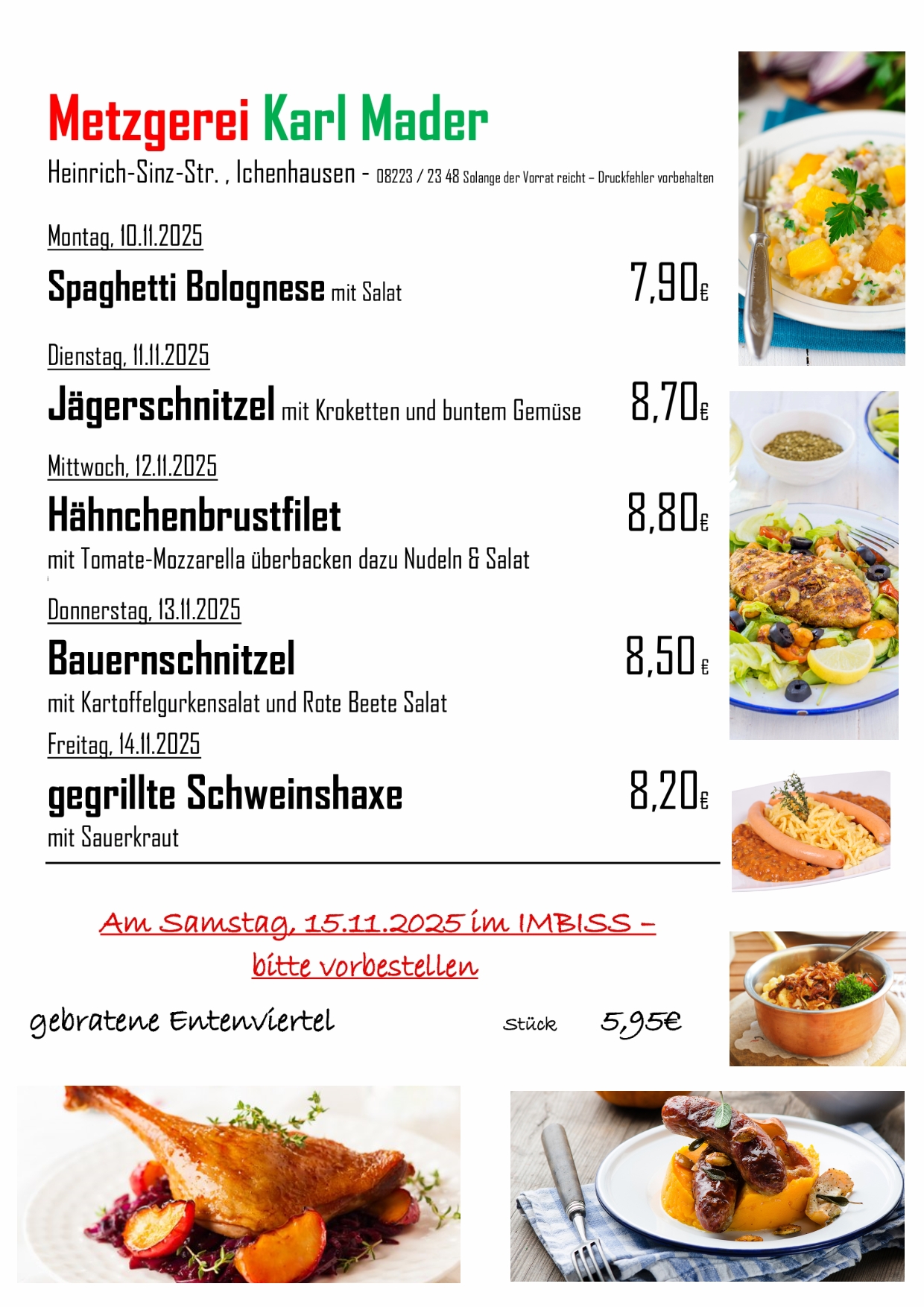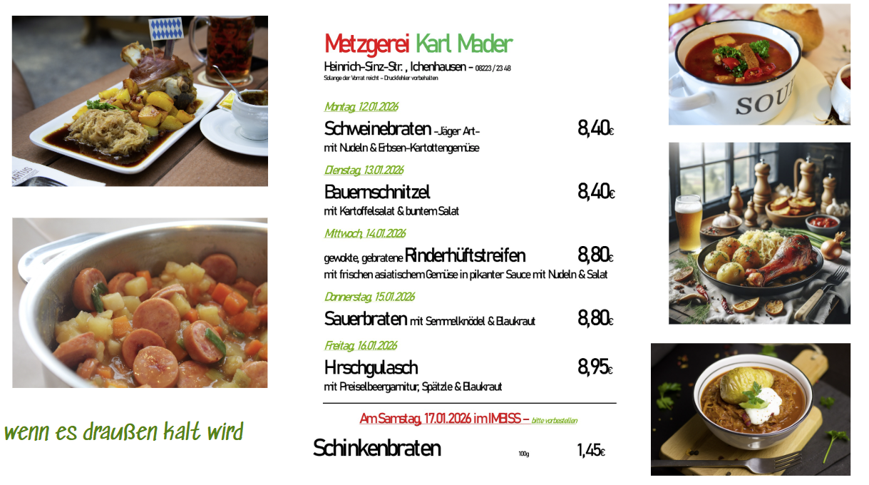 Speisekarte Metzgerei Mader Öffnungszeiten:
